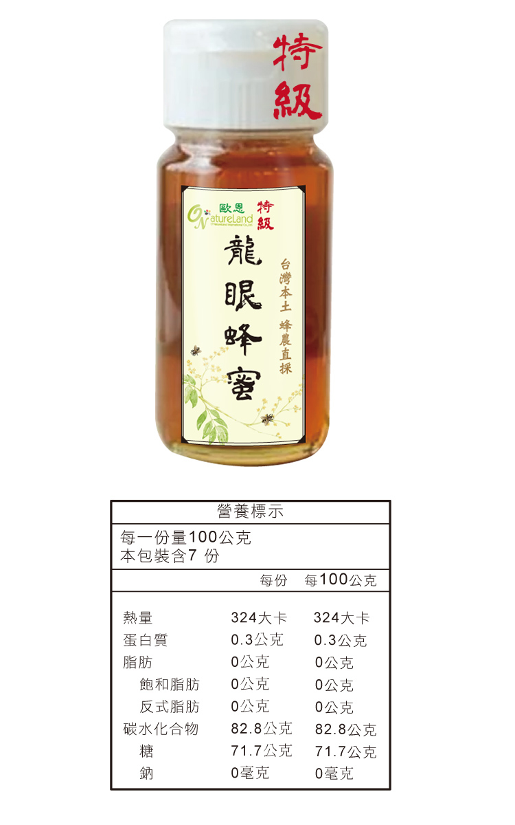 【歐恩】特級龍眼蜜蜂蜜(700g /玻璃罐)
