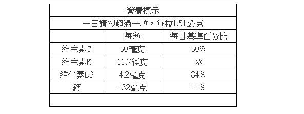 主要成分:左旋精胺酸(L-arginine)、左旋離胺酸(L-Lysine)、檸檬酸鈣、維他命C、維他命K、維他命D3