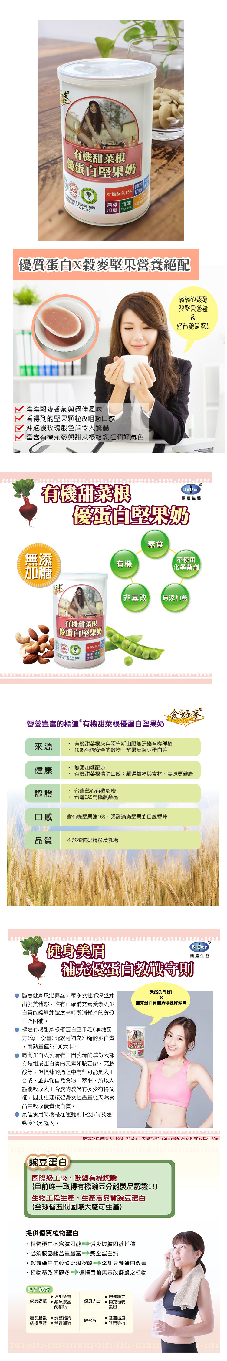 含有機堅果達16%,喝到滿滿堅果的口感香味 有機甜菜根清甜口感;