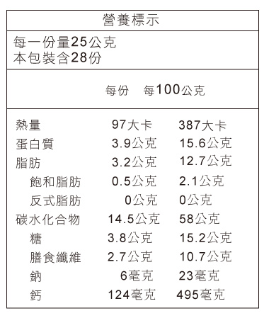※本產品含麩質穀類、豆類和芝麻,不適其過敏體質者食用。