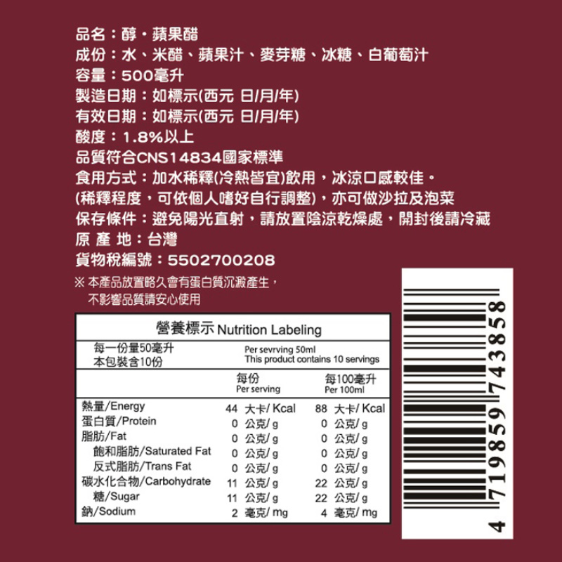 香醇豐富的蘋果味與清爽的質地,無論是加入橄欖油調成油醋醬汁,或作為雞肉或魚等白肉類或涼拌菜的調味醬汁,都十分合適。