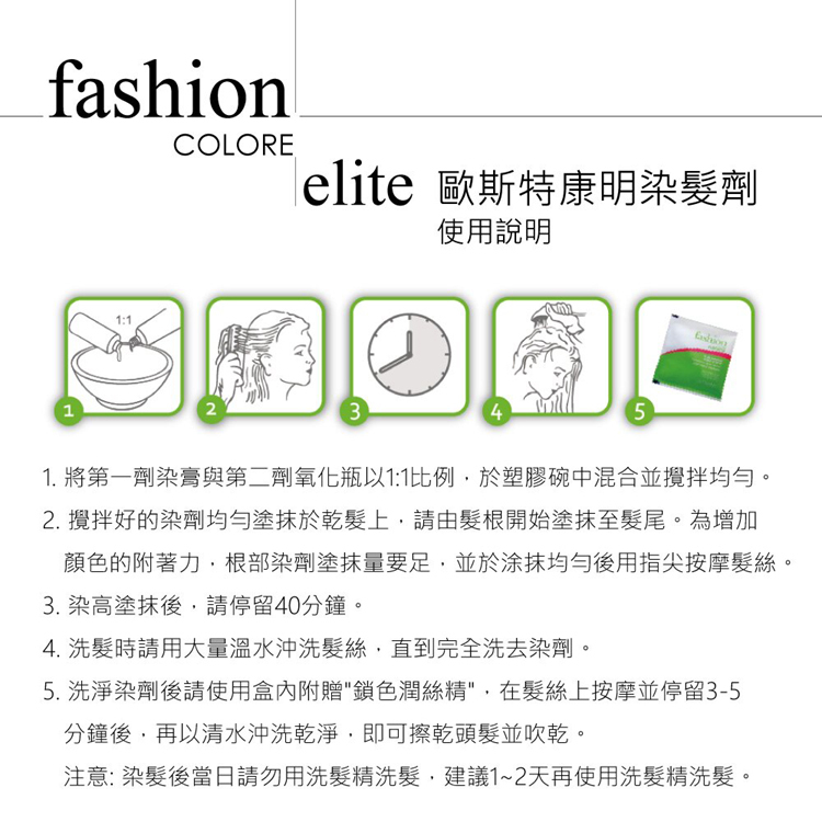 (3)正常染髮停留50~60分鐘,欲遮蓋白髮,停留60分鐘上色度最佳