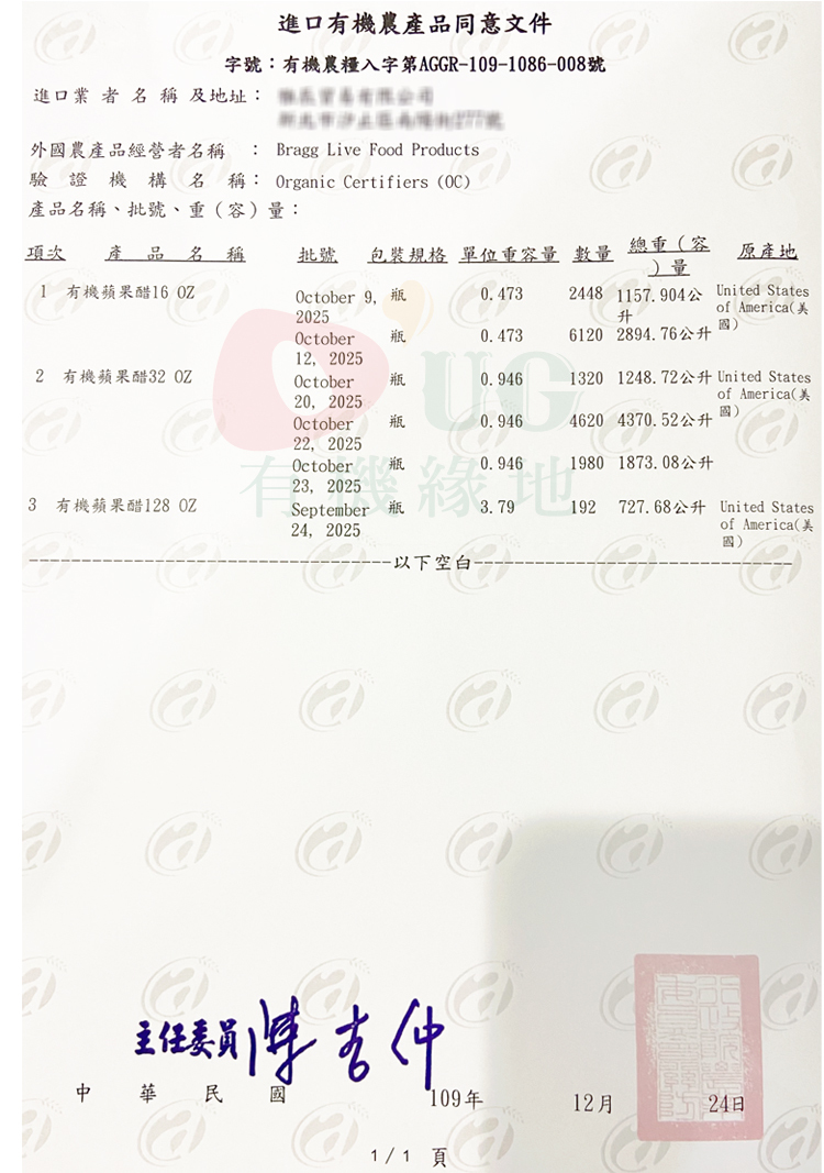 ★有機字號:第AGGR-109-1086-006號