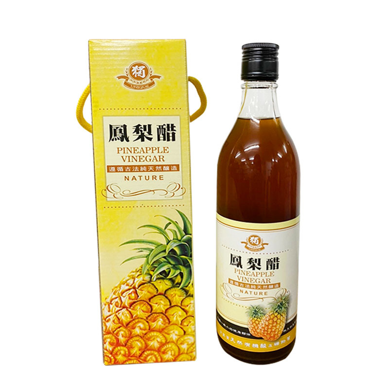 以新鮮鳳梨釀造而成,不添加色素、香料及防腐劑。含有鳳梨酵素與豐富維他命。